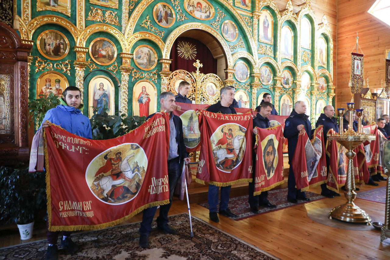 «Подобные знамена-хоругви всегда были на Руси. Например, стяг с изображением Спаса Нерукотворного — это вообще самый древний символ русского воинства. Христос олицетворяет евангельскую правду, на которой стоит вся наша христианская цивилизация. И сегодня бойцы должны знать и понимать, за что они воюют», — отметил клирик храма святых Петра и Февронии священник Александр Шепиль.