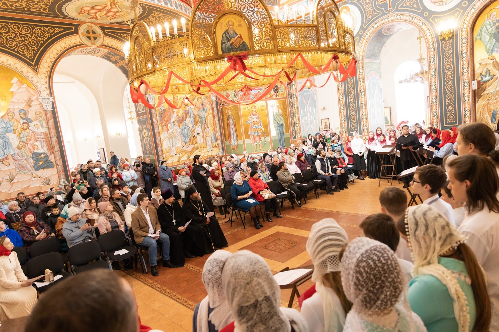 В ходе хоровой части были исполнены Пасхальный тропарь на девяти языках, произведения церковных композиторов Третьякова, Чеснокова, Кастальского, Гречанинова, Макарова и других, духовные канты и песнопения, посвящённые Воскресению Христову.
