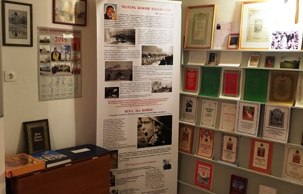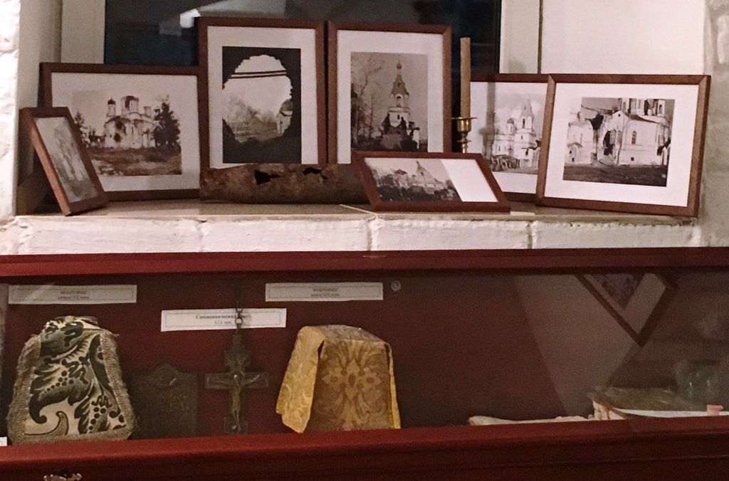 Весь храмовый ансамбль сильно пострадал в годы Великой Отечественной войны. Лишь в год празднования 1000-летия Крещения Руси после долгого запустения возобновились богослужения в Вознесенском соборе. Тогда люди понесли в открывшийся храм сохраненные ими иконы, церковные книги, утварь. Многие святыни, пострадавшие от времени либо человеческого неразумения, находились в плачевном состоянии… Предметы, принесенные прихожанами, послужили основой музейной экспозиции. Среди экспонатов – иконы, многие из которых, увы, вряд ли возможно отреставрировать, церковная утварь, шитье, фрагменты фронтонов и фресок разрушенных храмов, а также старопечатные книги и тетради с переписанными от руки молитвами – наследие времени гонений.