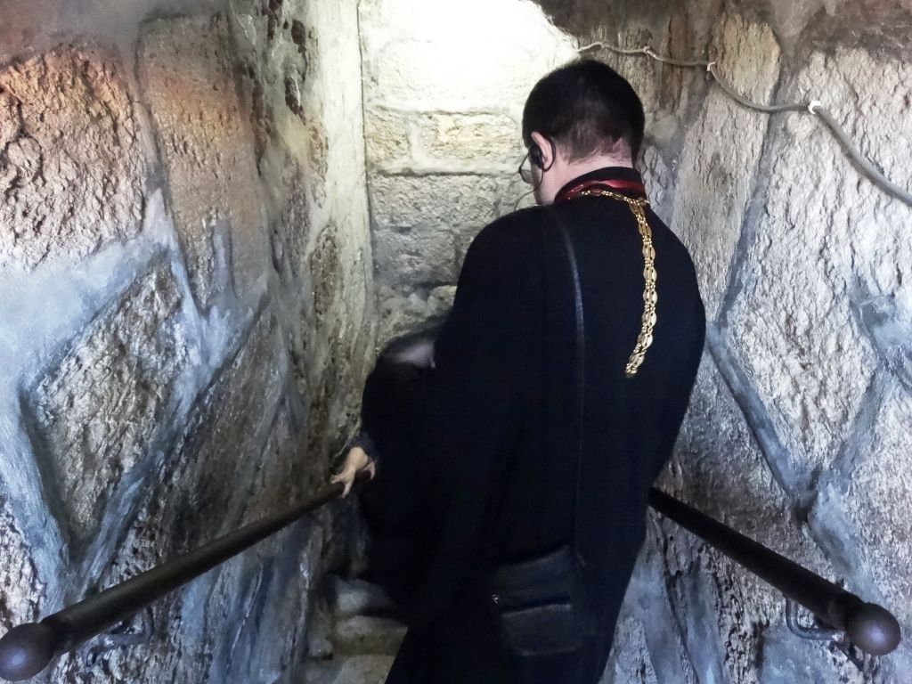 Спускаемся по узкой лестнице, внизу душно. Чтобы попасть в гроб, надо спуститься в нишу и сильно нагнуться. Внутри – вырубленное ложе для тела почившего. Душно. Здесь совсем не так, как в Гробе Спасителя. Место Воскресения пропитано светом жизни, благодатью принесенной жертвы. Место погребения Лазаря мрачно и наводит на мысль о хрупкости и недолговечности человеческой жизни.