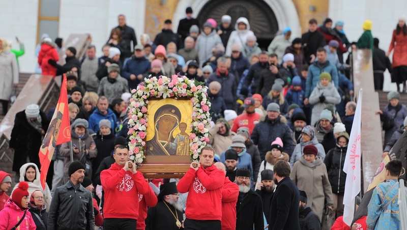 Доброй традицией стало проведение праздничного шествия в День народного единства, которое каждый год собирает сотни новых участников. Впервые праздничное шествие 4 ноября было организовано в 2008 году. Несколько молодежных организаций обратились к епископу Южно-Сахалинскому и Курильскому Даниилу с просьбой разрешить проведение шествия со списком Казанской иконы Божией Матери по улицам областного центра. Ведь именно с этим образом в 1612 году ополчение Минина и Пожарского освобождало Москву от польско-литовских интервентов. Благословение было получено, колонна во главе с иконой прошла от Воскресенского собора до Чехов-центра, на площадке перед которым состоялся митинг-концерт. В первом шествии приняли участие около 500 человек. На следующий год маршрут изменился, колонна прошла от собора до стадиона «Спартак». В 2009 году в шествии приняли участие уже около тысячи человек. Мероприятие стало ежегодным, активисты «Братства Александра Невского» традиционно несут образ Богородицы впереди праздничной колонны. Принимая участие в шествии, молодые люди ощущают себя наследниками своих предков и демонстрируют приверженность их традициям.