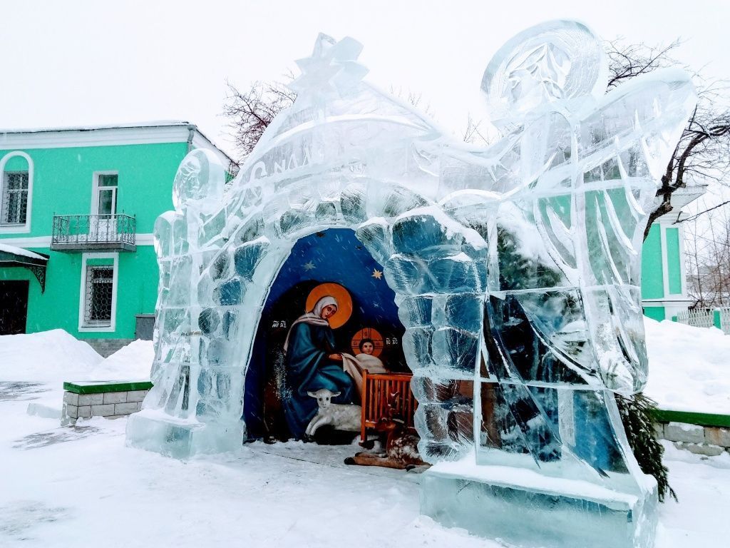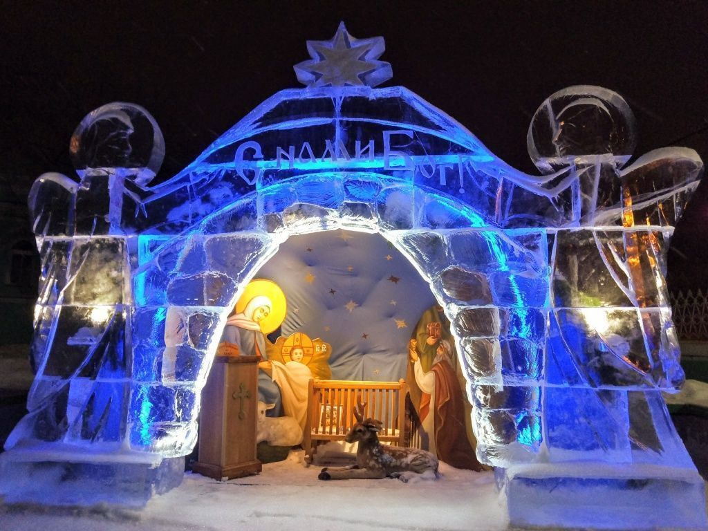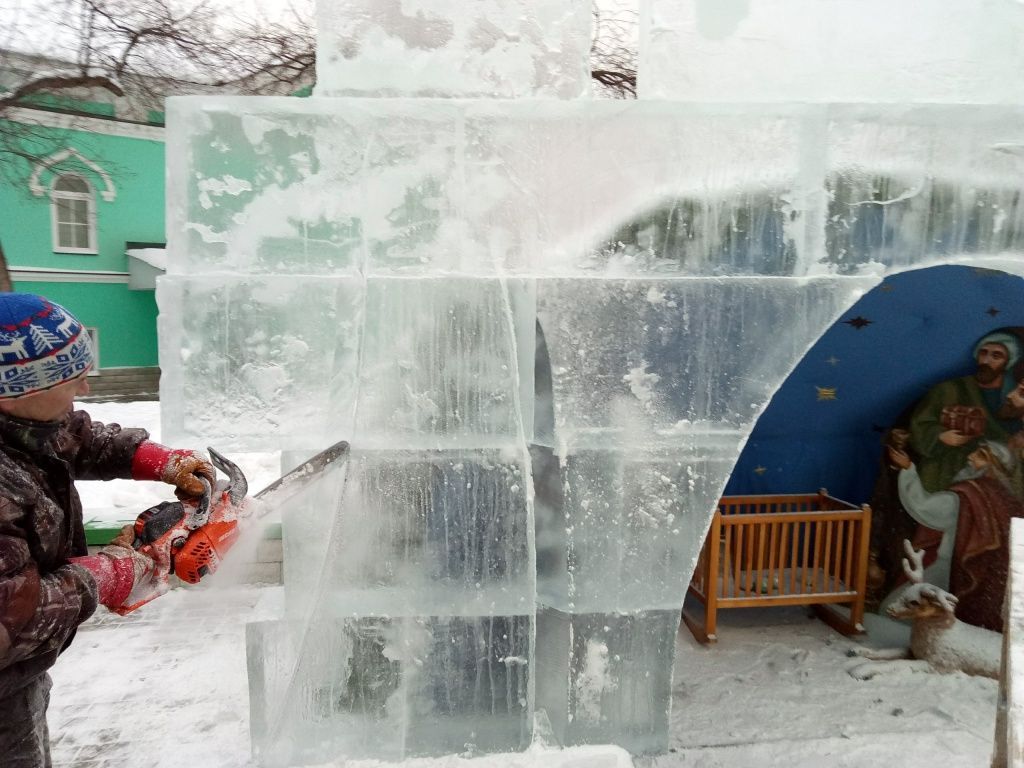 «Вы знаете мне очень нравится радовать людей!», – улыбаясь, искренне ответил на мой первый вопрос о самом желанном Алексей Исаев, простодушный и добрый художник и скульптор. А знакомство наше началось с того, что утром только еще начавшегося 2019 года, в первых числах января, рядом с Свято-Троицким кафедральным собором я увидел пока еще не обработанные глыбы льда, собранные в некое подобие арки, а рядом присматривавшегося к ним и «на черновую» обрезавшего все лишнее человека с бензопилой.