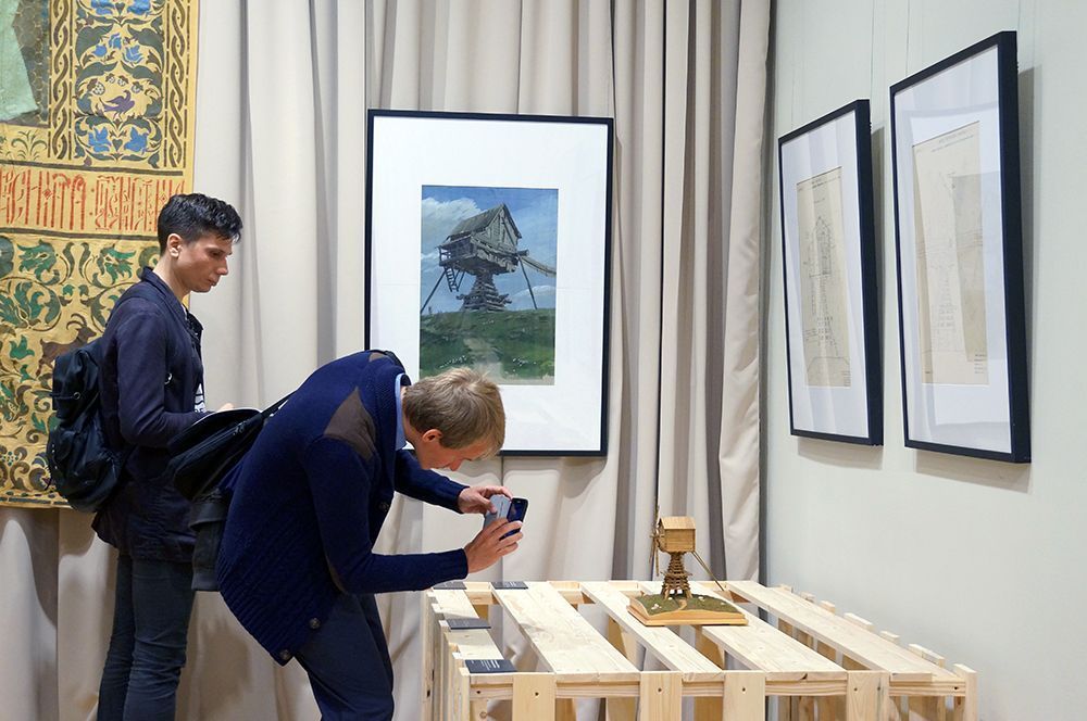 После торжественного открытия зал заполняют посетители, удивляющиеся друг другу: как же много людей! Склоняются над макетами, вглядываются в крохотные окна, неуверенно отвечают на улыбки резных деревянных русалок.