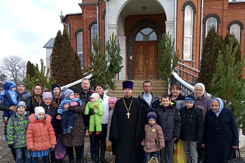 Бывает так, что у родителей в силу разных обстоятельств нет возможности собрать детей в школу, одеть или обуть, а порой даже и накормить. На сегодняшний день приход Свято-Троицкого храма окормляет пять малообеспеченных многодетных семей. Стараемся духовно поддерживать их и оказывать посильную гуманитарную помощь.