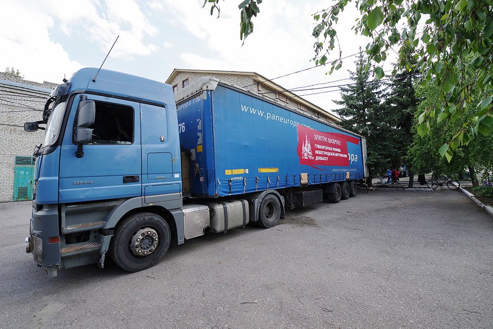 У одного из зданий Горловской епархии – нашего пункта назначения в Горловке – к нашей машине подошел руководитель епархиального отдела социального служения и благотворительности священник Александр Брянцев. Светлая улыбка и радость в глазах: «Христос воскресе!» И с той же улыбкой, перед тем как через пять минут начать вместе со своими помощниками разгружать машину, проинструктировал нас: