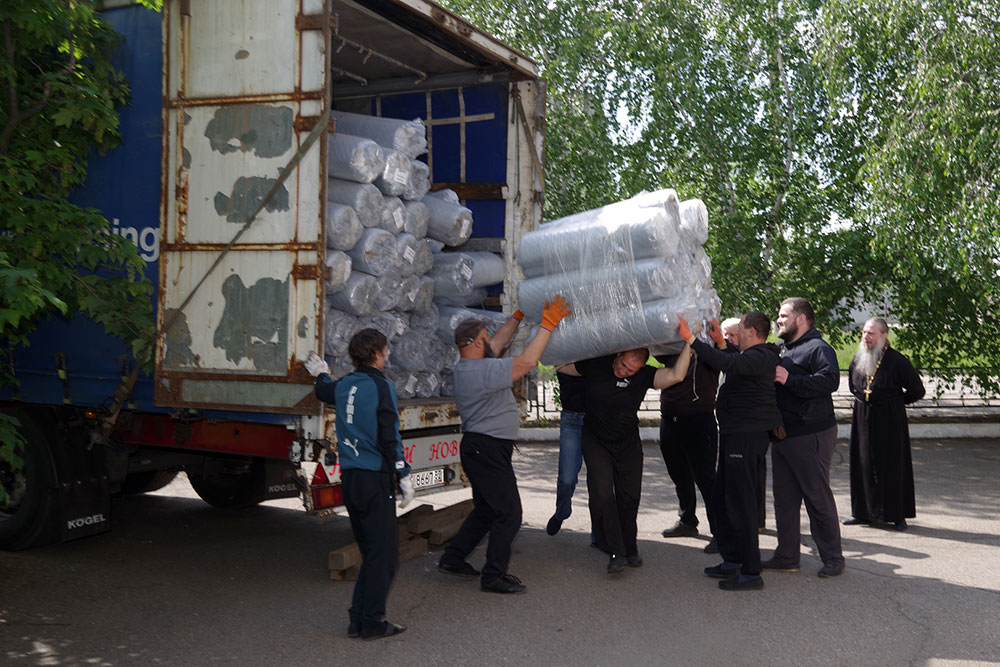 В этот раз по запросу Горловской епархии в составе гуманитарной помощи от Нижегородской митрополии было также 4000 матрасов для укомплектования пунктов временного размещения.