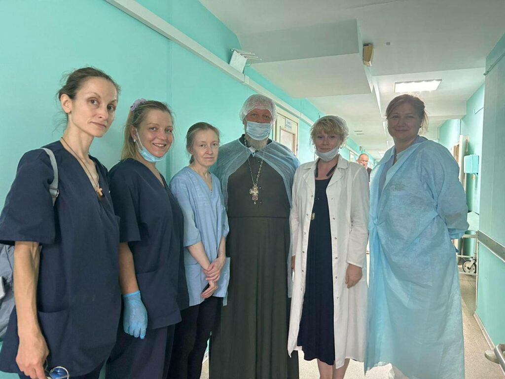 «Мы зашли в палату в ожоговой хирургии, а там лежат мама с сыном. Они миряне, втроём ехали в Крым на своей машине в отпуск отдыхать. И вот в машину залетел дрон и взорвался. От машины ничего не осталось, а все трое выжили. Отца выписали, мама более-менее ходит. А сын лежит сильно обгоревший, но живой. Знаете, они Бога благодарят, рады, что живы остались. Это, действительно, уникальный случай, ведь машина взорвалась, а они выжили!», – рассказывает отец Владимир Горновский.