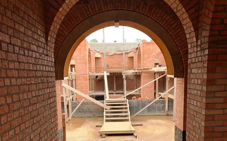 В один из воскресных дней мне представилась возможность встретиться с молодым священником иереем Димитрием Кужбэ. Договорившись заранее о встрече, я ехала к Божественной литургии. Недалеко от города Обнинска свернула в деревню Кривское Боровского района Калужской области и сразу же на въезде увидела строящийся кирпичный храм. Поразило, что, несмотря на ведение строительных работ, вся территория нового храма чистая, аккуратненькая, а возведенные стены – как из детской игры «лего», как будто их только что поставили.