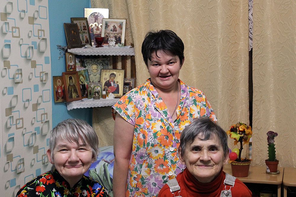 В этой комнате ещё живёт Люда. Без неё Ольга не смогла бы не только посещать храм, но и выходить на улицу. Через неделю после того, как Люда приехала в Малмыж, многие из обслуживающего персонала написали заявления об уходе: физически крепкая девушка всех задирала, раздавала тумаки, делала всевозможные пакости. С хулиганкой справились ДЦП-шная Оля и её такие же «не от мира сего» подруги.