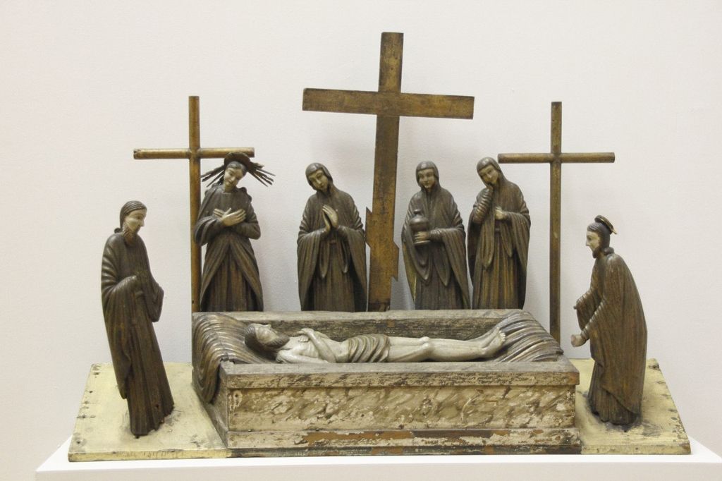 Больше всего памятников из деревянной скульптуры до нас дошло именно распятий, их более ста в пермской коллекции. Иногда распятие исполнялось с предстоящими – Пресвятой Богородицею и апостолом Иоанном Богословом.