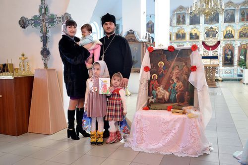 В семье подрастают доченьки. Их три (прямо как в сказках). Имена отец Алексий и Ирина дали им очень красивые: Эмилия, Валерия и Маргарита. Старшие ходят в садик, только Рита, которой еще нет и двух лет, все время проводит дома с мамой. Всей семьей они с удовольствием посещают местный физкультурно-оздоровительный комплекс, чтобы дети с раннего возраста приобщались к физкультуре. А еще потому, что для батюшки это тоже в некотором роде миссионерство.
