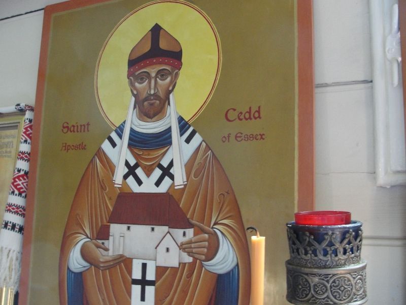 Местные святые – Кевин Ирландский, Колумб, святой Шотландии. Апостол нашего графства Эссекс – святой Кедд. На иконе святой держит в руках храм – он до сих пор существует, час двадцать езды отсюда. Храм VII века, первый кафедральный собор этого места, построенный Кеддом Эссекским в 664 году.