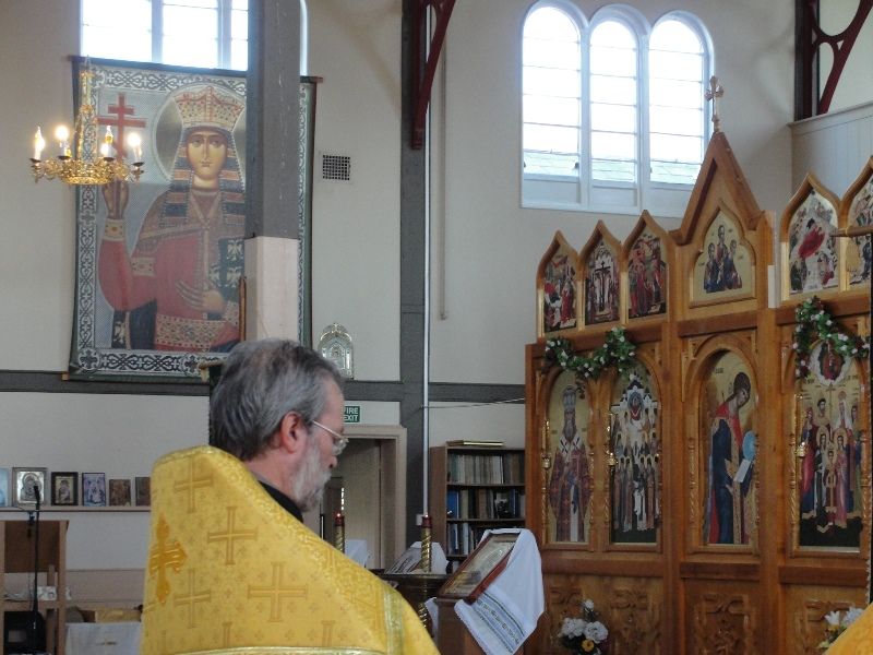 Настоятель храма в Колчестере отец Андрей Филлипс во время молебна