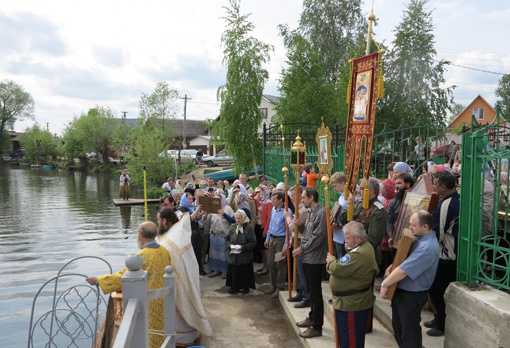 – Надо начать с того, что здесь двенадцать лет прослужил священномученик Евгений Елховский, потом его перевели в Никольский монастырь. Он здесь много положил трудов, его очень любили, ему дом построили рядом с храмом. Основную службу отец Евгений совершал через реку, в Введенском храме (его взорвали). Ох, как это жалко! Это была такая гармония красоты: два храма в устье реки, по обе стороны воды… А когда тот взорвали, также подъехали, чтобы и наш храм взрывать. Даже обложили уже бомбами, а люди, рыбаки местные, стали просить: «Не взрывайте, мы здесь венчались, крестились, мы всей Рыбацкой слободой вкладывали свои деньги, иконы делали, иконостас, штукатурили…» Они даже придумали такую хитрость: оставьте, говорят, храм хотя бы как маяк, нам не видно с озера, где устье реки.