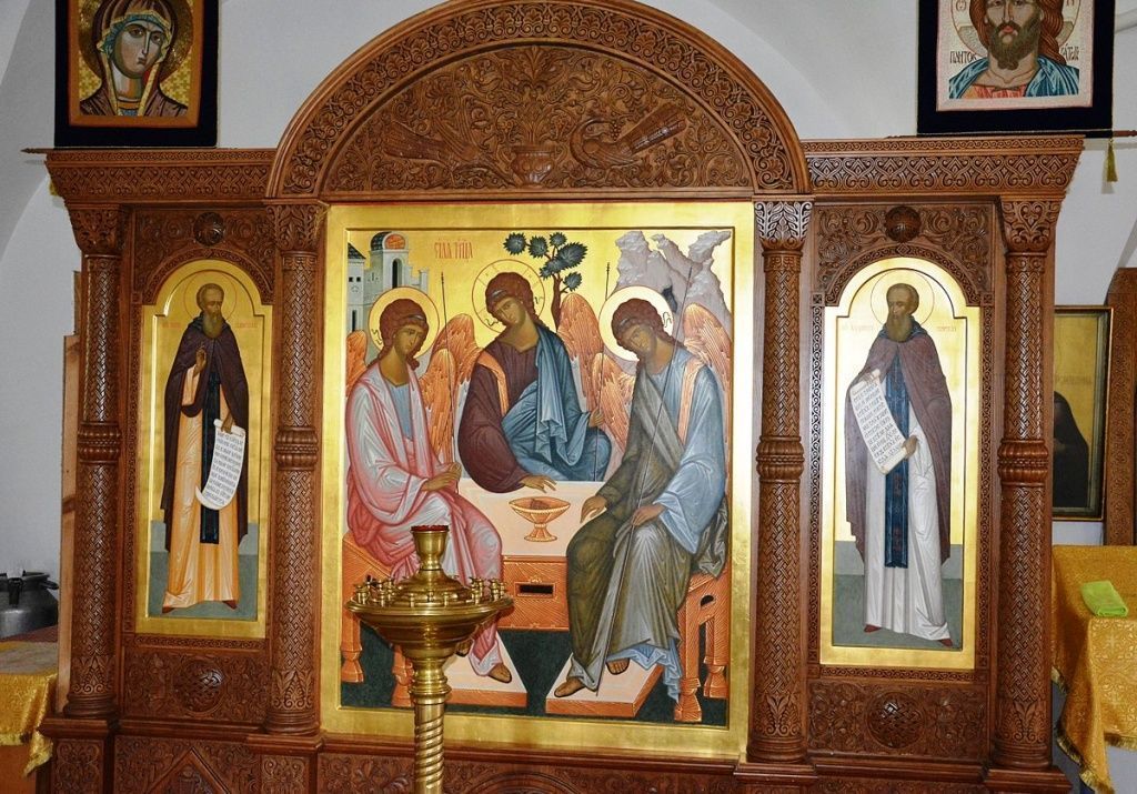Бывшая монастырская трапезная – сегодня не менее оживленное место: воскресная школа с мини-сценой, кухня, просфорня, крестильня, где можно крестить полным погружением – в росписи на стенах видна все та же кисть настоятеля. Да, и вышивальная мастерская.