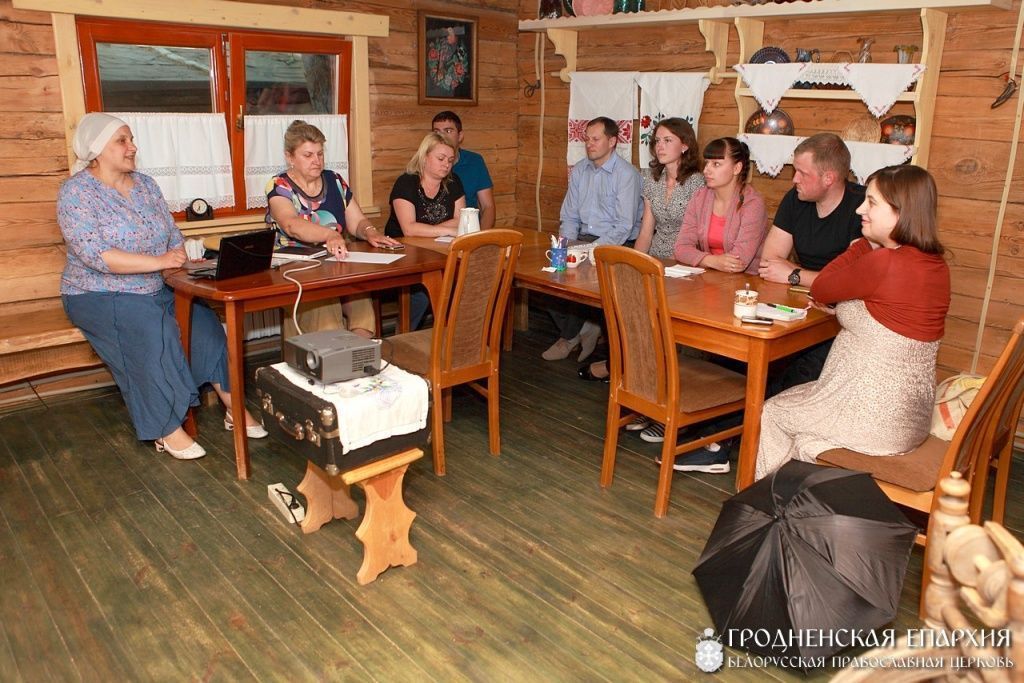 Одна из комнат в «прянике», напоминающем домик-музей, «сдана» для занятий. В ней всё просто. Так, как может быть просто в бабушкином деревенском доме из детства, где скрипят половицы, пахнет деревом и добрыми помыслами. Из прошлого, помимо пары-тройки предметов белорусского народного быта, пожалуй, всё. Вместо печи – батареи, над одним из окон элемент модерна – мультимедийный проектор.