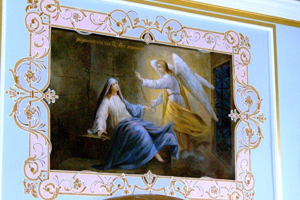Взирая на лики святых, в молитвенном трепете понимаешь: небо спустилось к тебе и взирает на твою душу. Воздушные и невесомые орнаменты чудесно дополняют собор святых. Евангельские события, образы Божией Матери, лики особо чтимых угодников Божиих, в том числе потрудившихся на уральской земле, составляют единое «небесное пространство» храма.