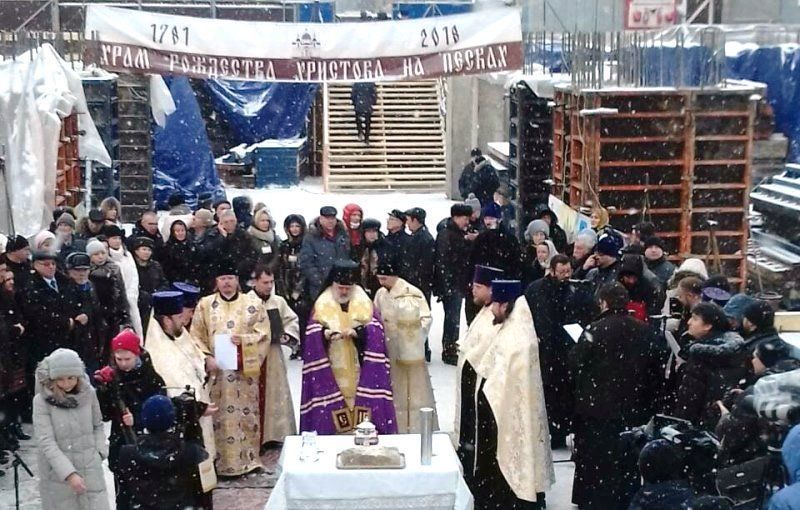 Десять улиц петербургского района, ранее известного как Пески, всё ещё официально называются Советскими, хотя настоящее их название – Рождественские. Сам я в детстве и юности жил на 7-й Рождественской, гулял и в сквере, пересекающем 6-ю, и уже не помню, в каком возрасте узнал, что на месте сквера когда-то стоял храм. Таких скверов у нас в городе до сих пор немало, дело неудивительное. И я даже представить себе не мог, что храм Рождества Христова, в честь которого и были названы улицы на Песках, когда-либо будут восстанавливать. Но в 2012 году вокруг сквера появился забор, позже на ограждённой территории была поставлена временная часовня, а 17 февраля нынешнего года был совершён чин освящения закладного камня храма.