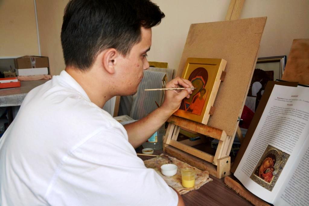 – С молитвы. Затем подготавливаем доску. Иногда на иконную доску, с целью лучшего её сохранения, наклеивают ткань – паволоку. Затем наносят грунт. В каноническом иконописании грунтовая основа имеет белый цвет и называется левкасом. Создается эскиз, на котором иконописец находит молитвенный образ, решает цветовой и тональный строй иконы. Затем наносится рисунок и раскрывается в цвете. В конце написания иконы наносится надпись – имя святого. Когда написание иконы завершено, её покрывают специально приготовленной натуральной олифой и просушивают в течение длительного времени, предохраняя от пыли.