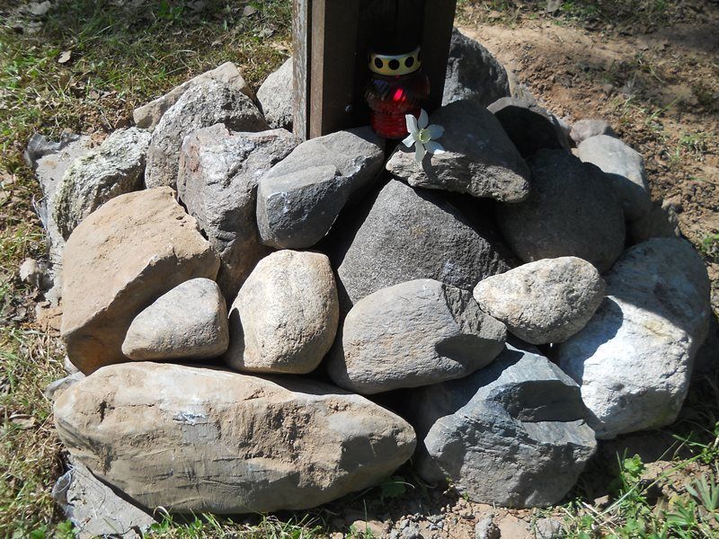 Нас было трое, я по немощам своим, в основном, руководил. Пока Саша копал ямку, в которой полностью поместилось бы металлическое крепление, Коля съездил за песком. После проверки вертикальности установки в несколько приемов мы замесили бетонный раствор и полностью залили им ямку с креплением. За два дня бетон застыл, и перед самым Днем Победы еще хватило времени обложить основание креста крупными булыжниками. По нашим меркам (как говорят – «для сельской местности») получилось весьма просто и вполне достойно. Впрочем, пусть судят другие.