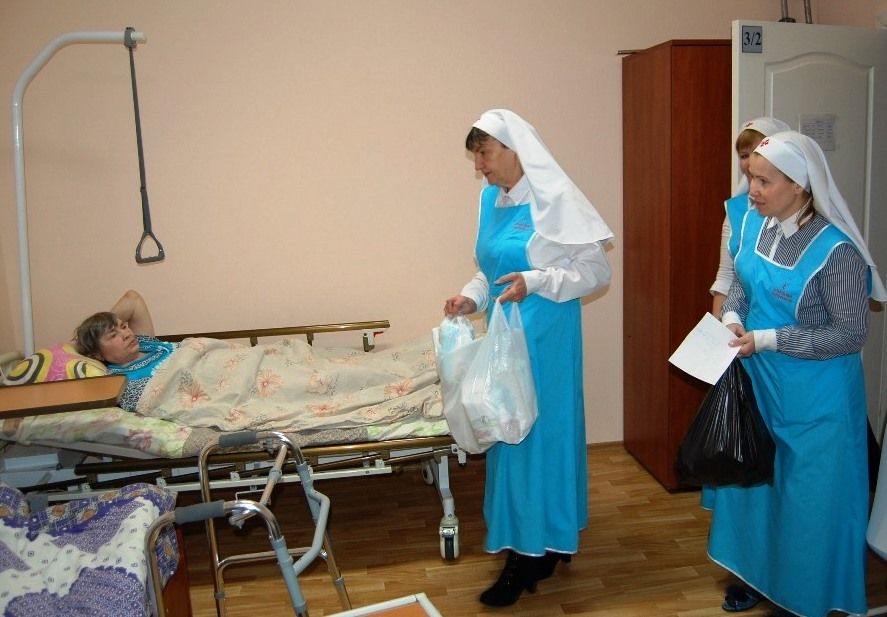 Добровольцы и на дому оказывают помощь, и в больницах. В наше время это очень актуально: многие люди верующие, но тот, кто в больнице лежит, кто инвалид, кто слаб просто из-за возраста, в храм не может прийти. Наши сестры приходят к ним, помогают подготовиться к причащению, к исповеди, молитвы читают человеку.