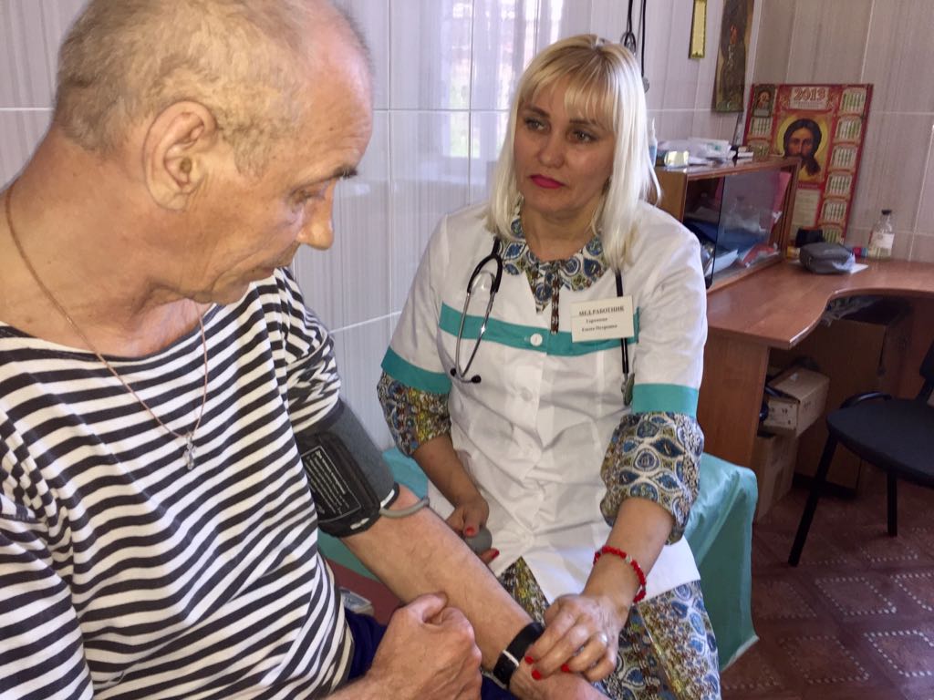 Мы спустились на первый этаж гостиницы и прошли в медпункт – «вотчину» Елены Петровны. Хозяйка медпункта была здесь же, измеряла давление постояльцу. Судя по тому, как она посмотрела на больного, стало понятно, что результаты измерения ей не понравились. Она попросила мужчину положить под язык какую-то таблетку и что-то начала ему объяснять. Затем повернулась к нам: мол, слушаю вас…