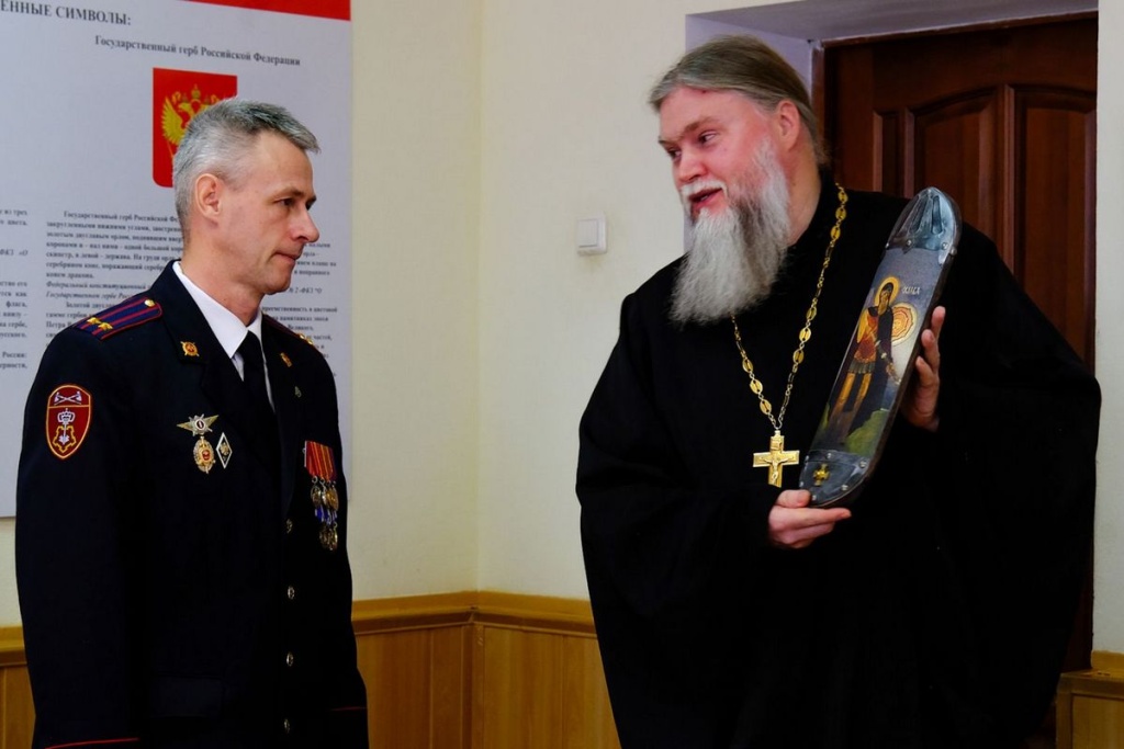 Много мероприятий проводится у нас совместно с Министерством внутренних дел. Есть у нас молебная комната во имя Георгия Победоносца в ДК Дзержинского, в здании совета ветеранов. Там не только совершаются богослужения, но и проходят встречи с ветеранами. Встречаемся в подразделениях с росгвардейцами, участвуем и в других торжественных мероприятиях.