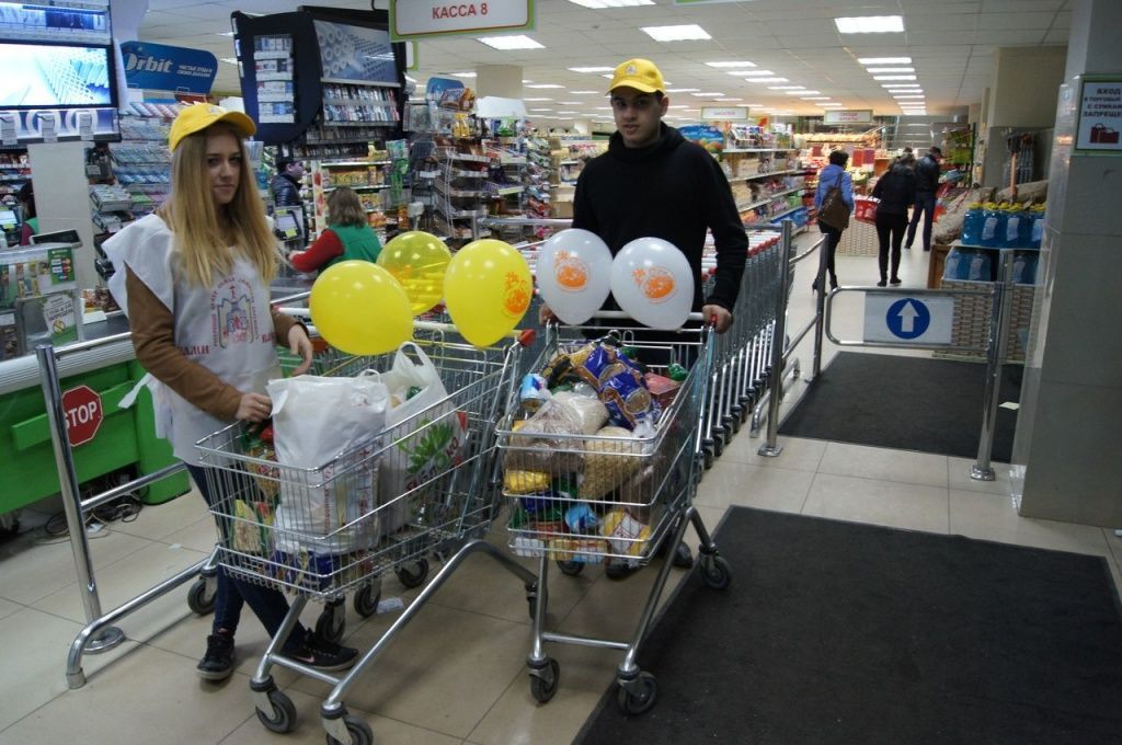 Чтобы принять участие в акции, екатеринбуржцы могли купить в ТЦ «Яблоко» любые продукты долгого хранения (крупы, макаронные изделия, консервы, сгущенку, чай, сахар, печенье и т.п.) и положить их в специальную тележку у кассы, отмеченную значками акции.