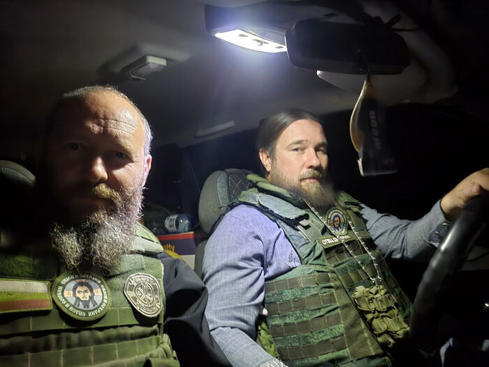 Стоит отметить, что мы по дороге в Курск с большим гуманитарным грузом планировали по пути заехать в Никольский монастырь 20 августа и завести туда продукты (овощи, яйца), которые передал отец Игорь Лесик из Гвардейского. Помимо этого нас просили привести кабель, инструменты, различное оборудование и многое другое, что мы и купили. Благополучно заехали в монастырь, все выгрузили. Но, к сожалению, обратная дорога пошла не по плану. Выезжая из обители в сторону Волновахи, мы «скаканули» в яму, и машина уже дальше никуда сама не поехала. Случилось это перед Владимировкой. Пришлось оставлять транспорт и идти ночью пешком в Волноваху, куда следовало потом и машину как-то дотащить, иначе до утра она, однозначно, была бы разбита вражескими беспилотниками.