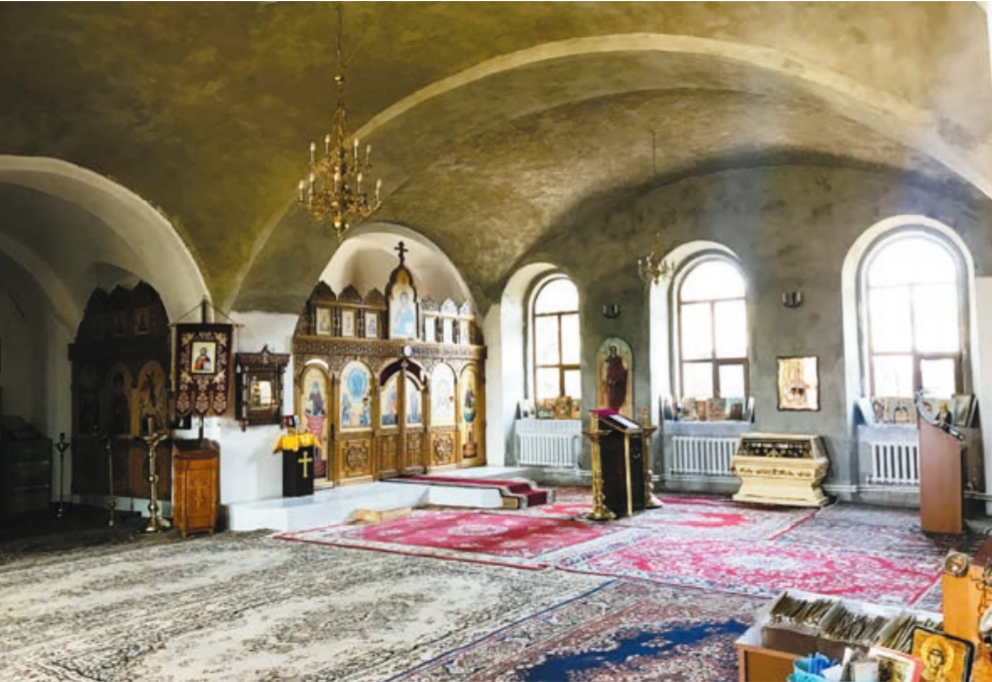 Перед нами довольно просторные два придела, как и положено старинным храмам, под внушительными арочными сводами. Да и в остальном всё как со старинных фотографий древних монастырей: ковры на полу, деревянные иконостасы, полумрак под сводами. Ловлю себя на мысли, что мурашки, тем не менее, не побежали. Но матушка предлагает войти в Вознесенский придел – тот самый, который самый древний в Козельске.