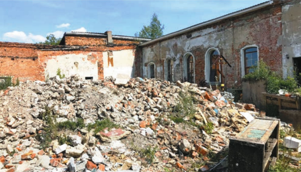 Матушка берет ключи и ведет меня меж наваленных шлакоблоков вдоль двухэтажного здания, поеденного временем, как бабушкина шаль – молью. Одни дыры кругом. Оказывается, оно раньше принадлежало хлебозаводу, который находился здесь в советское время. Постройки завода с двух сторон «взяли в плен» четыре стены старинного Вознесенского храма.