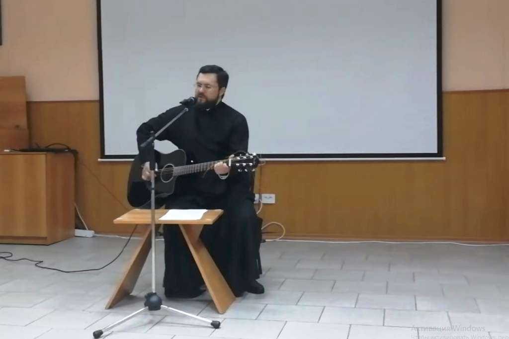 Были у нас моменты, когда мы в конференц-зале нашего храма устраивали концерты. В прошлом году отец Александр из Демидова пригласил нас на фестиваль выступить на фоне народных коллективов. Понятно, чего ждать от священника с гитарой. Были песнопения духовного порядка – это сочинения иеромонаха Матюшина, достаточно глубокие, в какой-то мере тоскливые. Ну а в конце было «Это всё». Зал аплодировал, кричали: «Браво!» С одной стороны, и не ожидали, а с другой, как мне кажется, достаточно эффектно смотрится и слушается.