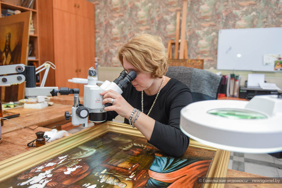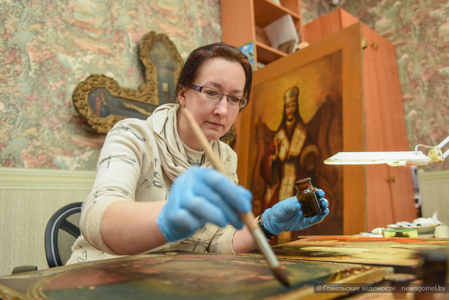 Редкая для Республики Беларусь профессия реставратора весьма уважаема среди музейных работников. Получить специальное образование можно пока только за пределами страны, например, в Москве. Круг мастеров узок, поэтому каждый – на вес золота. Несмотря на это, в Гомельской епархии в 2015 году сумели открыть реставрационный отдел и начать восстановление икон.