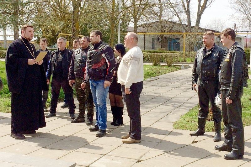 – Ко мне обратился президент отделения «Ночные волки КавМинВоды» Александр Шмаков с просьбой осуществлять пастырское духовное окормление православных членов клуба. Решение данного вопроса было оставлено на благоусмотрение правящего архиерея нашей епархии. После получения положительного ответа от епископа Георгиевского и Прасковейского Гедеона я стал «своим» священником в местном мотоклубе.