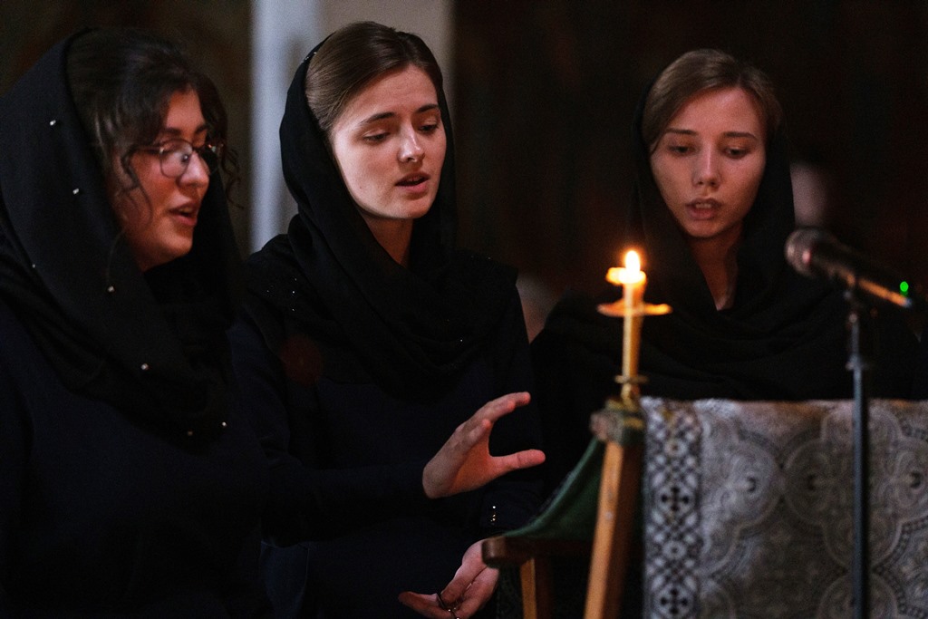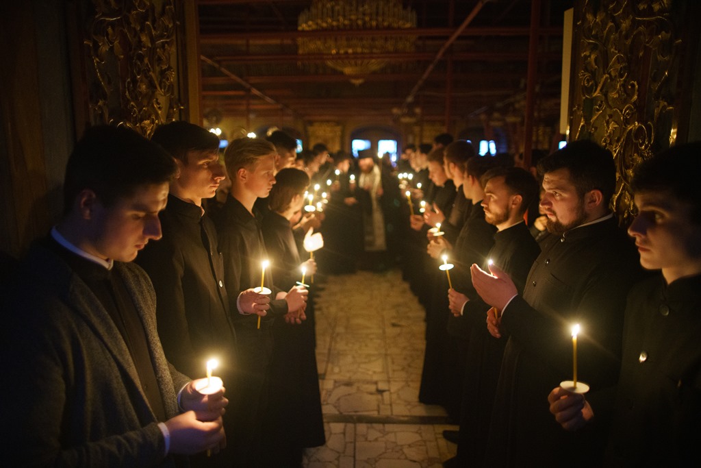 А уже вечером Великого четверга каждый студент с зажженной свечей будет молиться и сопереживать страданиям Господа на службе «Двенадцати Евангелий», за которой читаются отрывки о Крестных страданиях Спасителя.