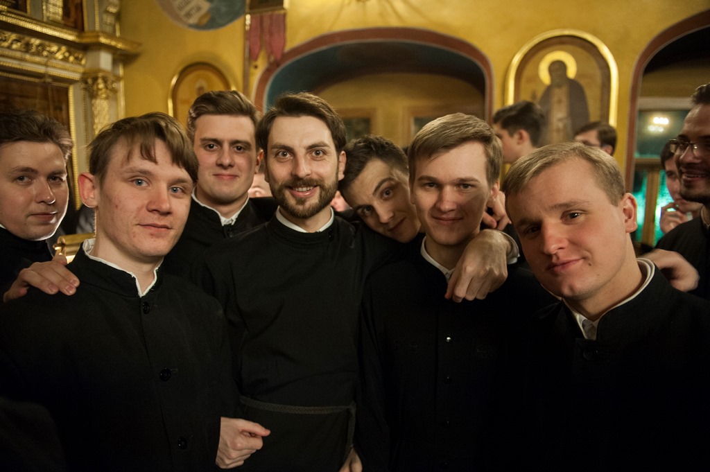 Великий четверг – один из самых радостных и в то же время напряженных дней. В Московской духовной академии существует традиция: накануне, в Великую среду, преподаватели и студенты принимают участие в общей исповеди, а после вечерних молитв все участвуют в Таинстве Соборования. В Великий четверг все вместе подходят к Чаше и причащаются Тела и Крови Христа. По окончании литургии все духовенство выходит из алтаря на солею, и старший диакон громогласно читает Благодарственные молитвы по Святом Причащении. Радость этого дня заключается в том, что вся академическая семья подходит к одной Чаше и соединяется вместе в Таинстве Святой Евхаристии.