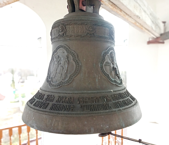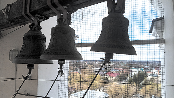 Как принято называть колокола? Один есть у нас Благовестник – самый большой, в который звонят перед началом литургии. Все, наверное, слышат, когда начинает звонить благовест: удар мерный, повторяющийся, зовущий на службу. Раньше часов не было – люди по благовесту понимали, что пора идти в храм. Есть еще у нас зазвонные и подзвонные колокола, по три тех и других.