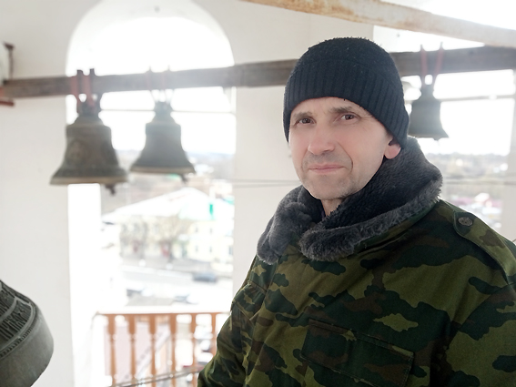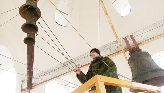 Так как у меня нет ни слуха, ни музыкального образования, мне было тяжеловато. Я звоню механически, не могу подбирать по слуху или по нотам. А вот у нашего отца Сергия (священник Никольского храма, тоже бывший военный – прим.) призвание. Ему проще было освоить колокольные звоны: у него грамотность музыкальная есть, и супруга закончила консерваторию, она регент здесь. Понимаете, научиться дергать за веревочки – это половина дела, а научиться звонить – гораздо сложней. У нас, по стечению обстоятельств, нет замены, поэтому мы много лет звоним поочередно.