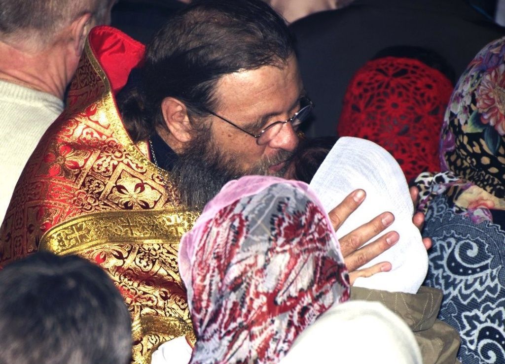 Вдруг возгласы стали слышны совсем близко, а плотно стоявшее море народа пришло в движение. Люди перешептывались между собой: «А, это отец Сергий опять идет обниматься-целоваться». И, действительно, двухметровый батюшка, возвышавшийся над основной массой своей паствы, уверенно шел вперед, обнимая-целуя всех, кто ему попадался. С замиранием сердца я стояла и ждала, что сейчас, вот-вот, он подойдет и ко мне. Но буквально за два человека до меня батюшка развернулся и пошел обратно к алтарю.