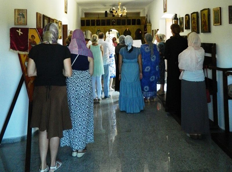 Не сразу, а только по некоторым отличительным жестам священника, по его внешнему виду и характерному греческому облачению, а еще более – по обилию среди прихожанок мам с малышами и наличию в алтаре смугловатых мальчишек-алтарников, облаченных в футболки и шорты, я догадалась, что передо мной – не паломники, а русскоязычная православная община Пафоса. И когда после богослужения прихожане стали обращаться к батюшке с вопросами: «О.Георгий, а в понедельник служба будет?», все сомнения отпали окончательно.