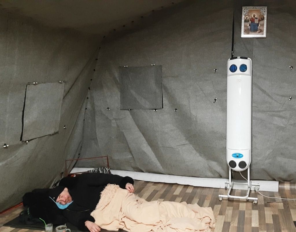 Действительно, справа от входа – небольшой экран через раритетный видеомагнитофон транслирует очередную серию какого-то сериала. В углу – сушилка для обуви, на которой, кроме разнокалиберных бот, аккуратно развешаны разношерстные линялые носки. Прямо по центру –большая икона, под ней стоит прибор для обеззараживания воздуха.