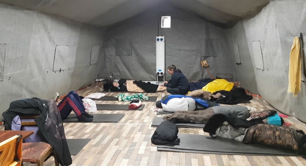Приветливую, еще не совсем старую курносую женщину зовут Света, она охотно проводит экскурсию в помещении, которое стало приютом для нее и для таких же, как она, «людей с улицы» – палатке «Теплый Кров». Обогреваемая палатка рассчитана на одновременное пребывание 60 человек. «Квартирующихся» днем немного: соберутся ближе к ужину, к 20:00, а пока ходят «по делам».