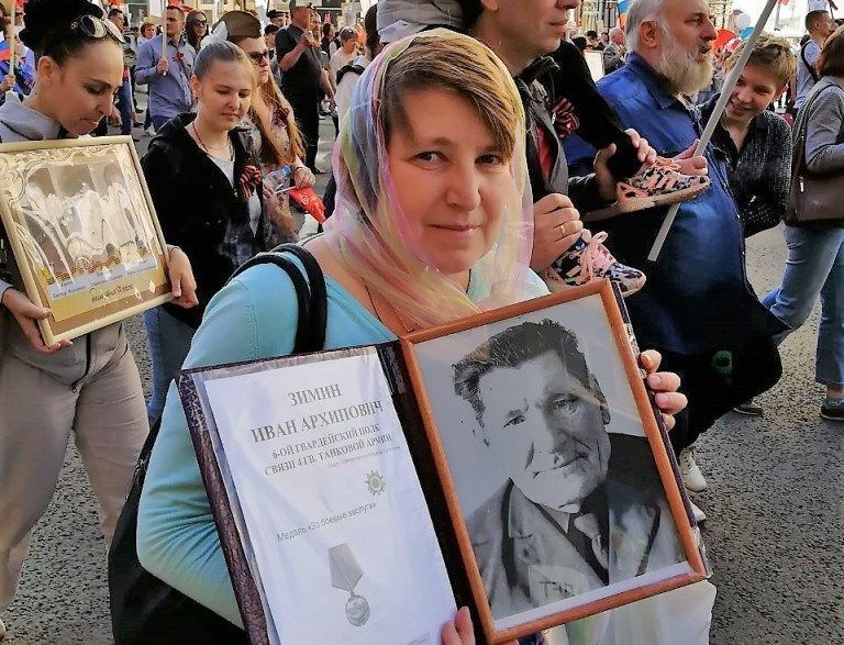 Александра Измайлова с портретом деда в ряду Бессмертного полка