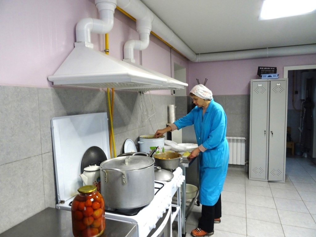 – Наши хозяюшки приходят заранее, к 11 часам, чтобы успеть все приготовить к обеду. Мы варим щи, готовим второе с гарниром каждый раз, ничего не оставляем на другой день. К двум часам начинают собираться наши подопечные.