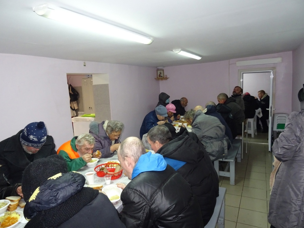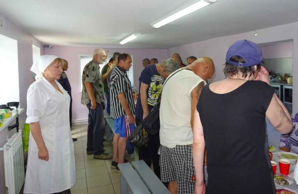 В гуманитарный центр и благотворительную трапезную обращаются одинокие пенсионеры, инвалиды, многодетные и малоимущие семьи, одинокие матери, погорельцы, беженцы, переселенцы, бездомные, люди, которые освободились из заключения или оказались в тяжелом материальном положении. В среднем в трапезную на обед приходят 25-30 человек в день, порой меньше, но иногда их число достигает сорока.