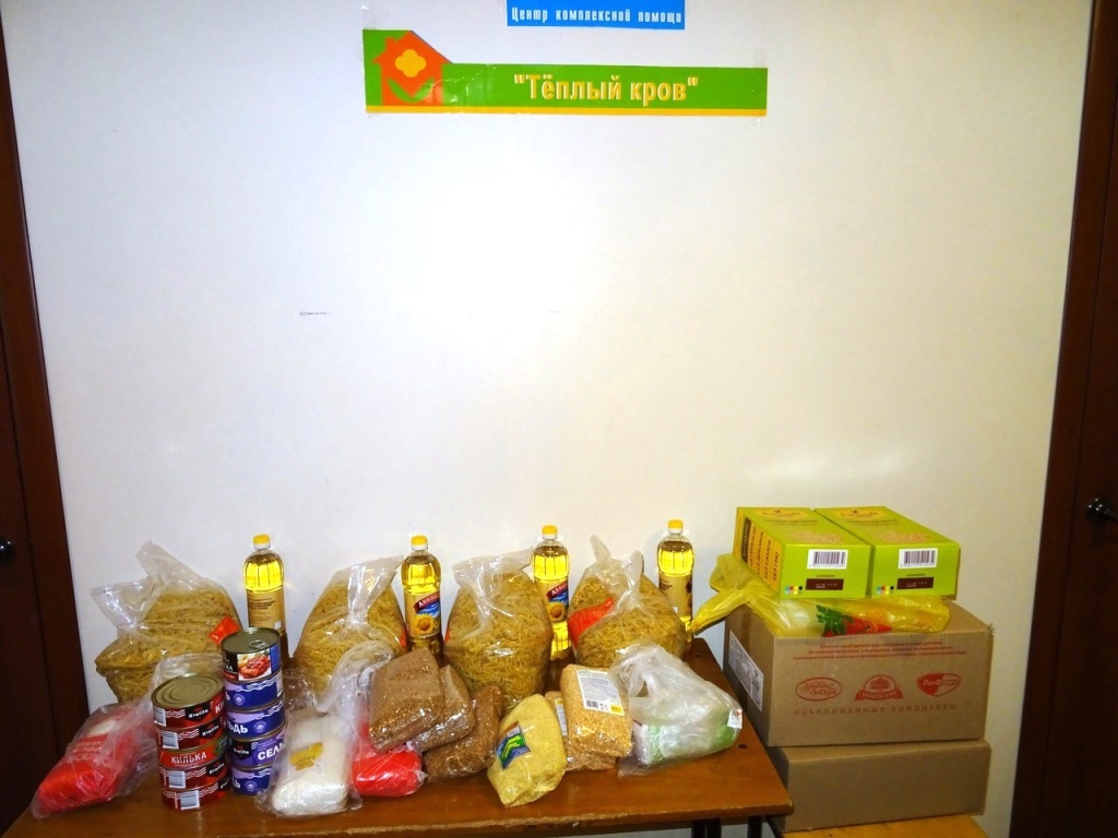Раз в месяц волонтеры собирают продуктовые наборы, чтобы поддержать многодетные семьи, матерей-одиночек, одиноких пенсионеров и других своих подопечных. Общий вес одного набора – восемь-десять килограммов. Он включает крупы, макароны, сахар, растительное масло, другие продукты питания. Ежемесячно за такими наборами в гуманитарный центр обращаются десять-пятнадцать человек.