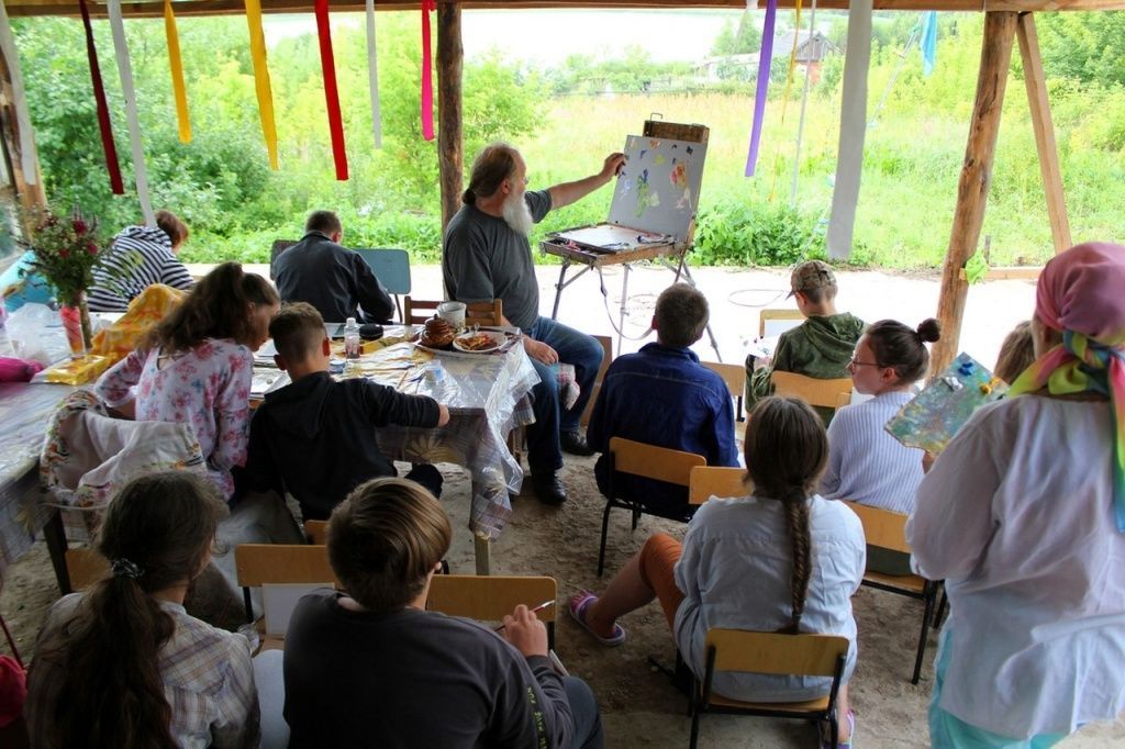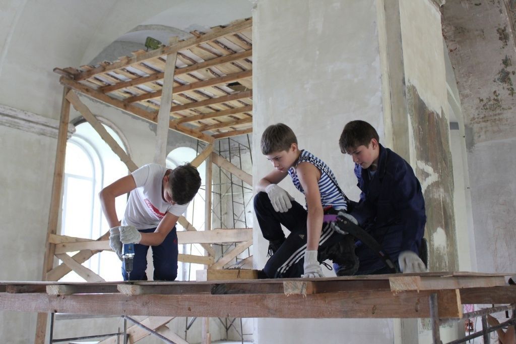 Чем занимаются участники мастерской? В этом году дети помогали расписывать храм: вырезали трафареты, сами смешивали колер, наносили узоры на колонны. Что-то мы, взрослые, потом подправляли: смысл не в том, чтоб они много сделали – смысл в том, чтобы потрудились, запомнили этот опыт. Потом ребенок подходит через год: «Ой, а этот кусочек я делала!» «А представляешь, – говорю, – ты в 70 лет придешь с внуком и сможешь сказать то же самое». Это главное: чтобы у ребенка осталось чувство радости, чтобы он видел, как постарался – и у него получилось.