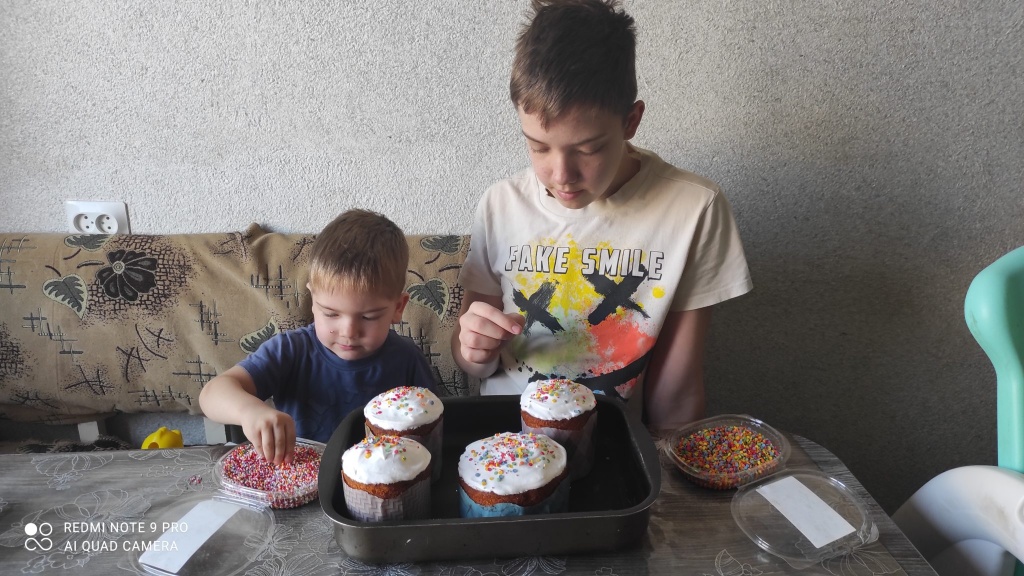 Каждый год к празднику Рождества Христова мои дети учат колядки, а 7 января, когда вся наша большая семья собирается вместе, они их исполняют. Такой маленький концерт получается. На Пасху мы красим яйца, освящаем крашенки и куличи в Александро-Невском кафедральном соборе. А в день Пасхи собираемся дома, поздравляем друг друга: желаем счастья, здоровья, мира и благополучия. Потом садимся за праздничный стол, разрезаем освященный в храме кулич и каждому даем по кусочку.