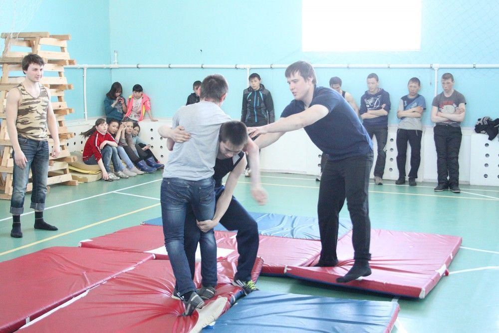 – После разминки мы разучили со школьниками пару болевых приёмов, поотрабатывали, как от них уходить, и устроили спарринги, – рассказывает Антон. – Тренировочные бои сходу начинать нельзя. Однако предполагалось всего три занятия, а хотелось, чтобы ребята почувствовали вкус борьбы. Смотрел, конечно, внимательно, чтобы не увлеклись чрезмерно в поединках и дело не закончилось травмой. Ну, и Коля подстраховывал, он тоже немного в самбо разбирается. Все три раза спортзал был полным. Жалко, мы уехали, и заниматься дальше с мальчишками борьбой будет некому.