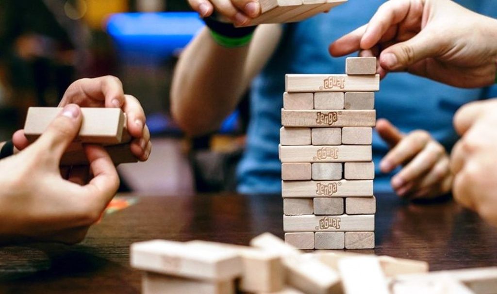 Люблю очень «Башню» – в этой игре могут играть на равных и дети, и взрослые. Из брусочков выстраивается башенка, одной рукой нужно доставать из нее по одному брусочку и сверху его докладывать. На чьем ходу башня рухнула, тот и проиграл.